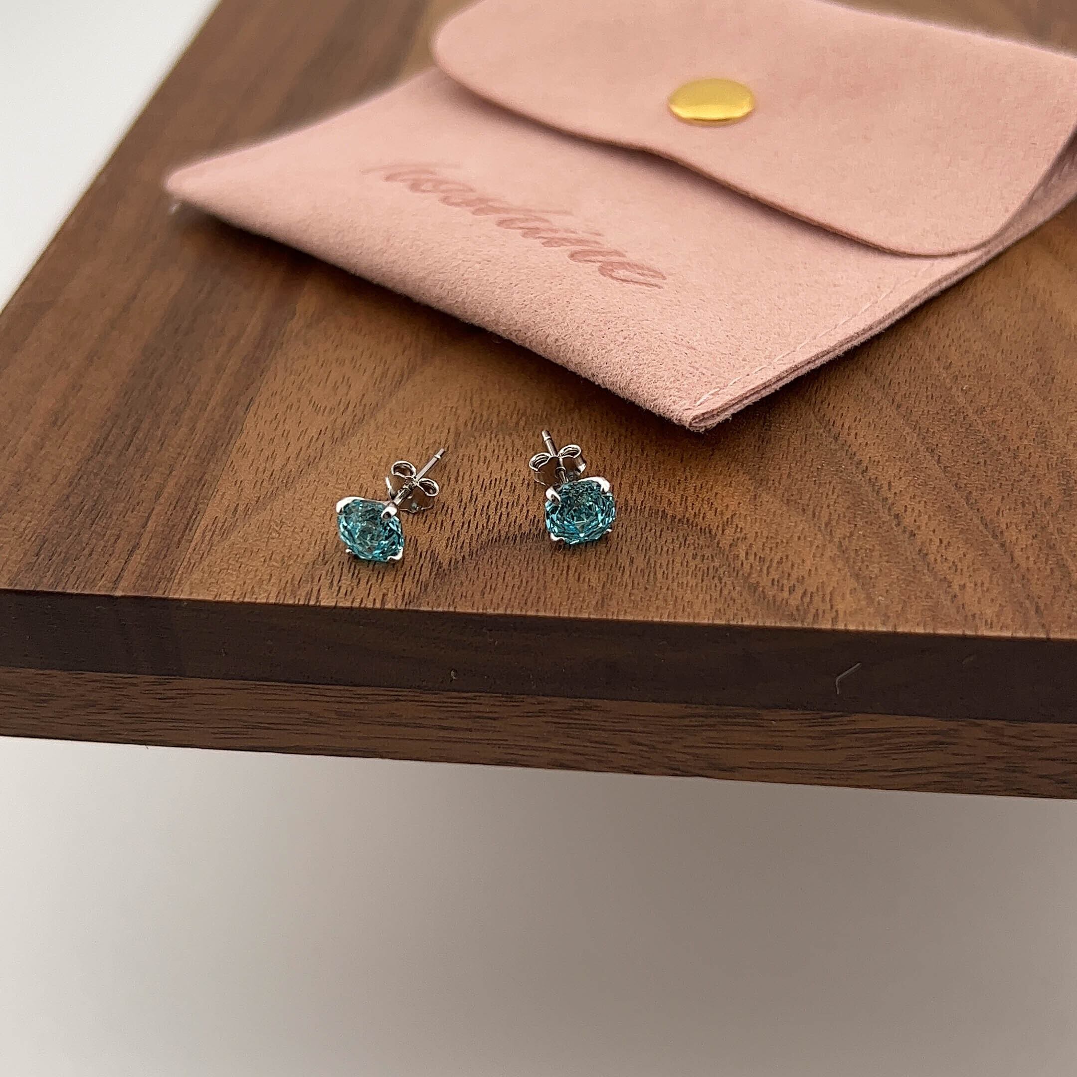 S925シルバー ピアス|アクアブルー ジルコニア 一粒石 シンプルで上品なレディースイヤリング
