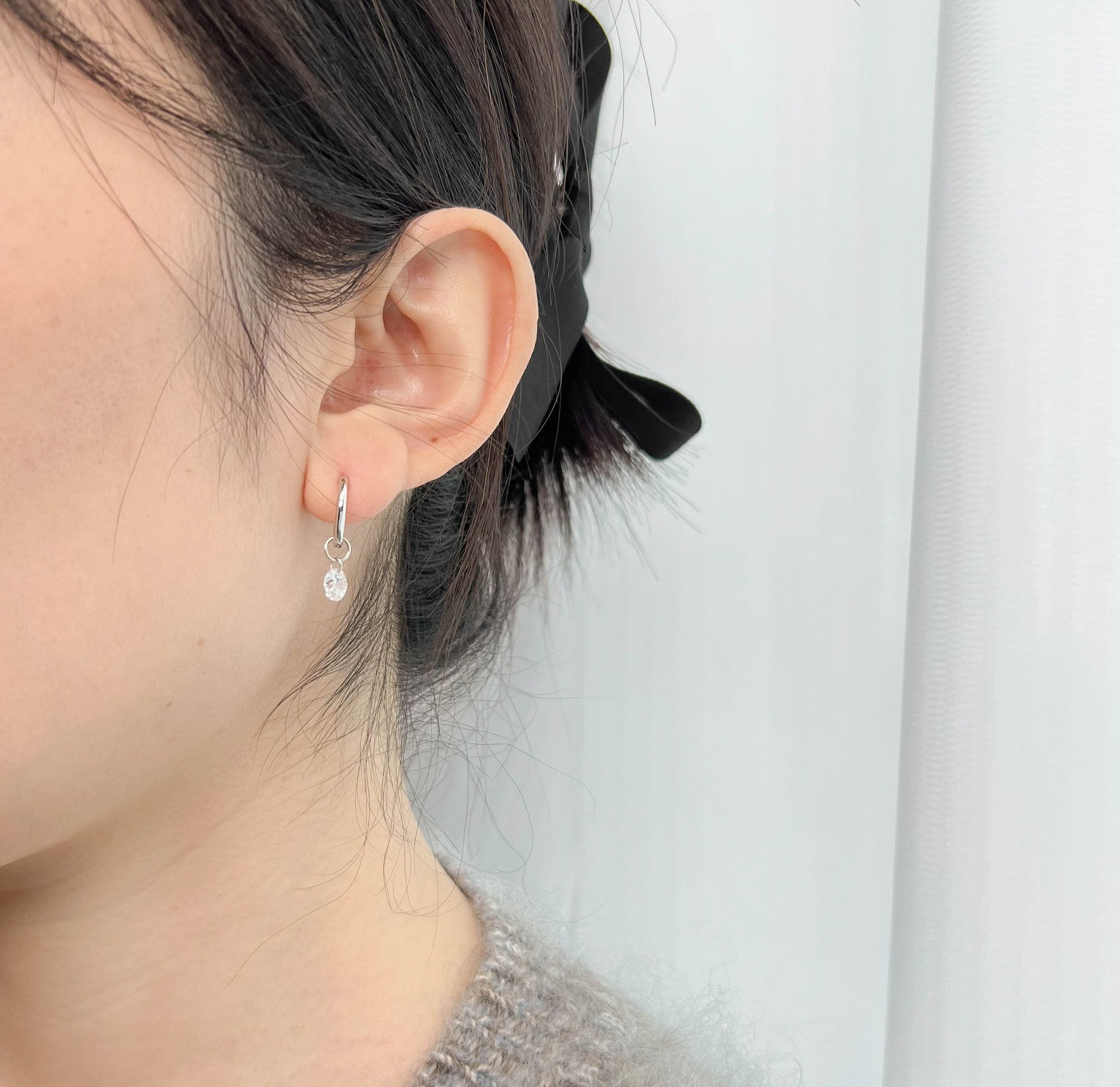 上品に輝く、S925純銀モアサナイト一粒ピアス。