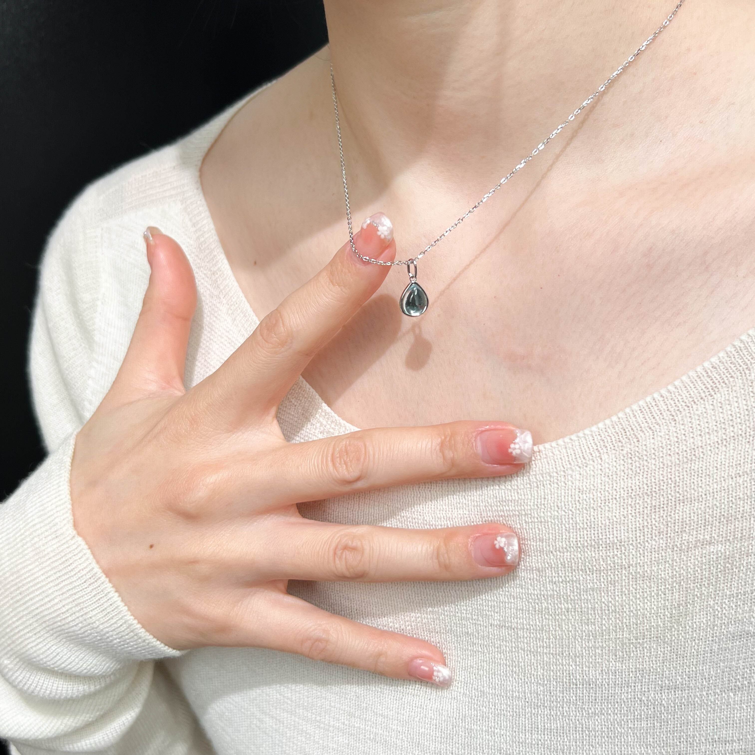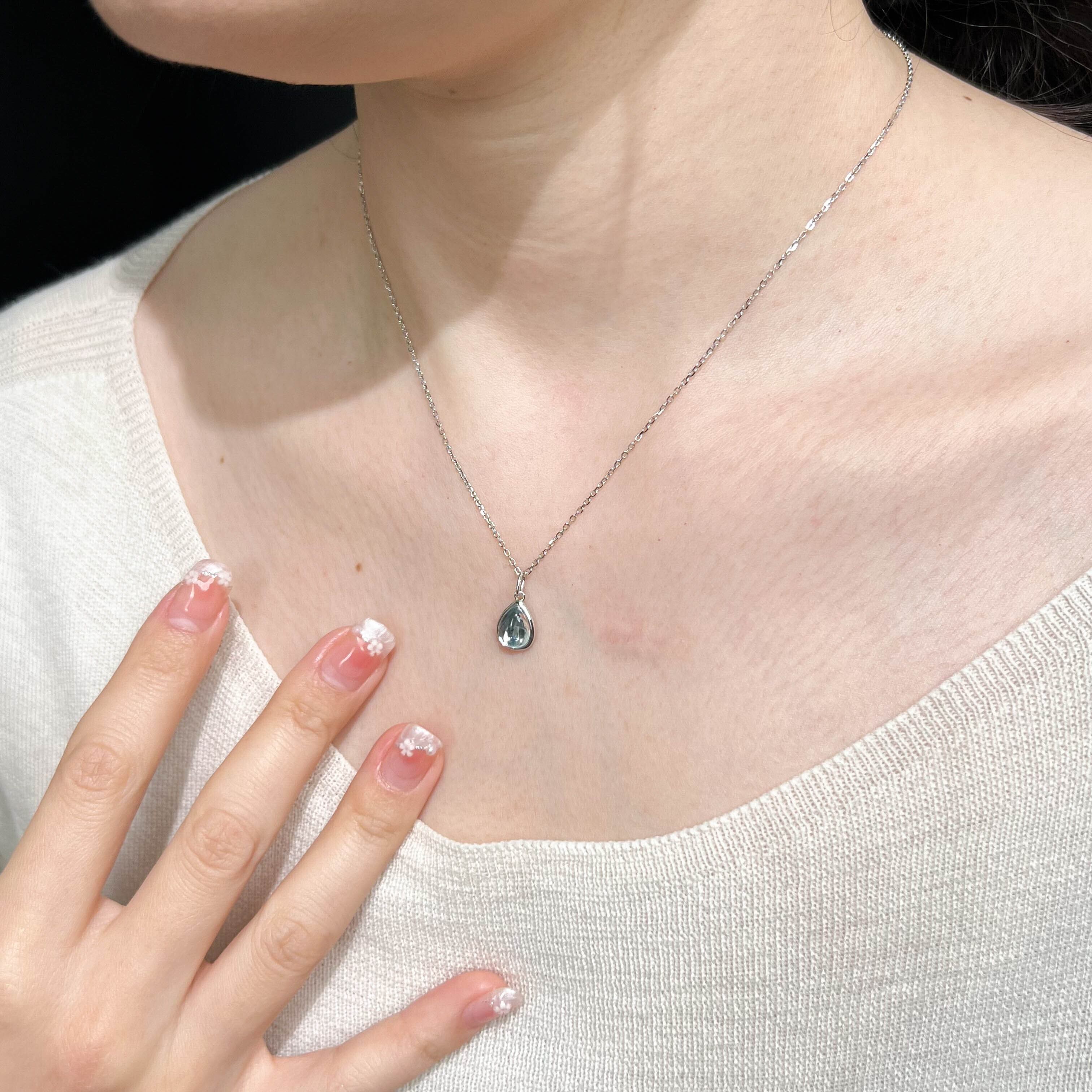 透明感のある爽やかなブルーが胸元を上品に彩り、シンプルなデザインで普段使いから特別な日まで幅広く活躍