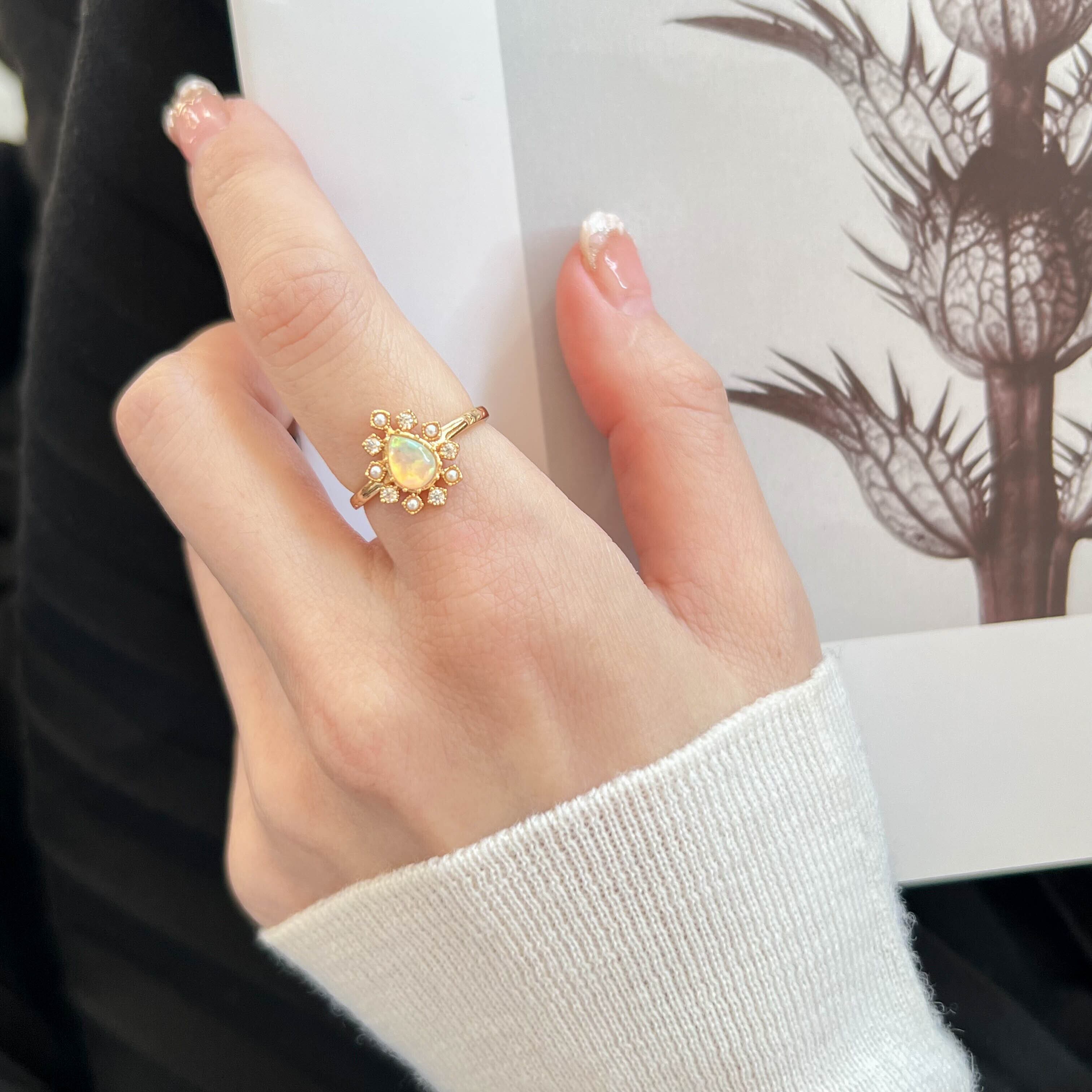 Silver925シルバー 10Kゴールドメッキトレンド感のある軽やかなラグジュアリー オパールリング レディース ヴィンテージ風