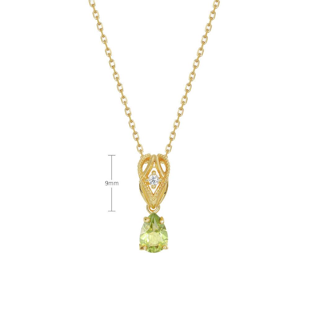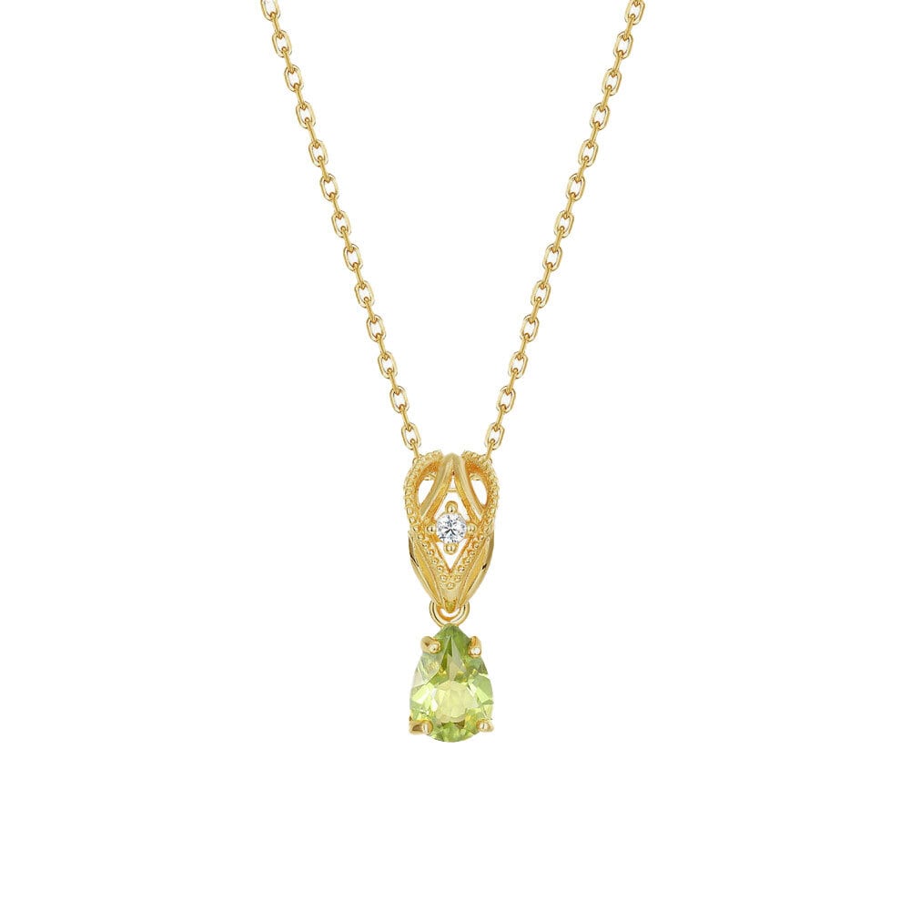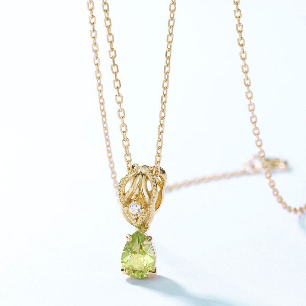 ペリドット しずく型 ヴィンテージ風 透かしペンダント Silver925 ゴールドメッキ ショートネックレス