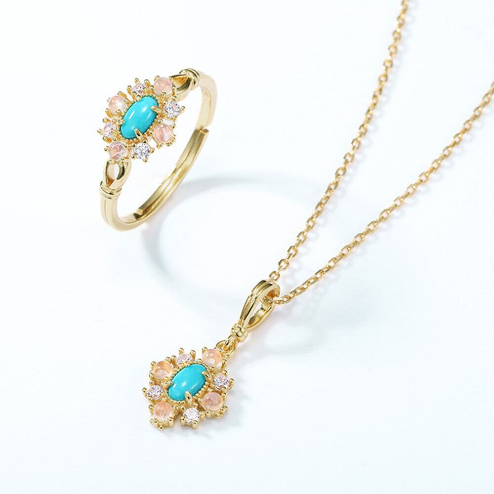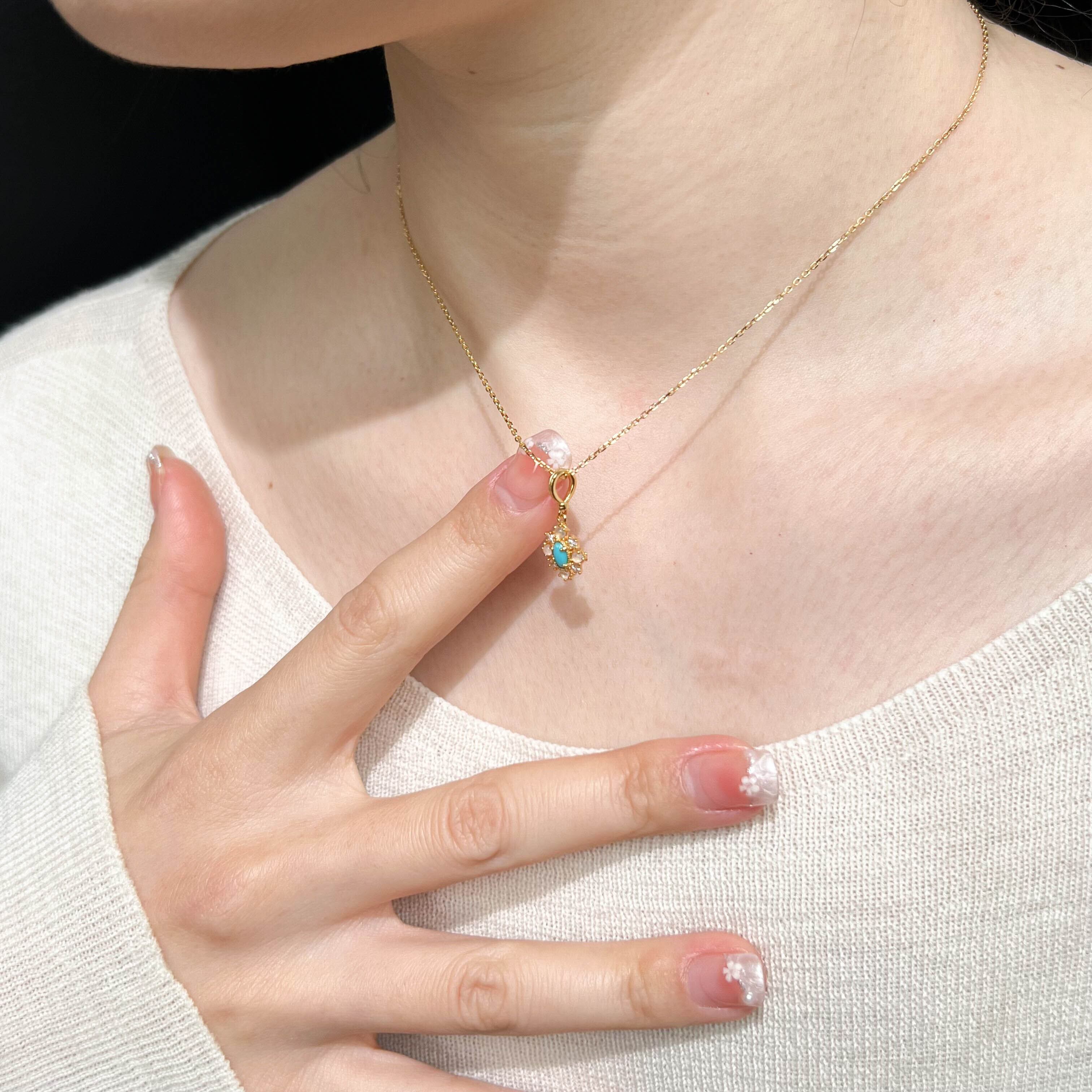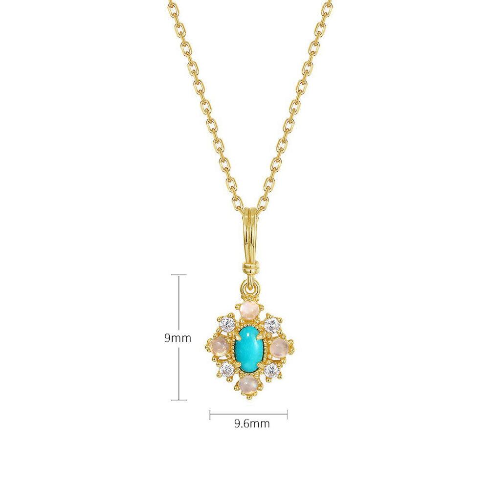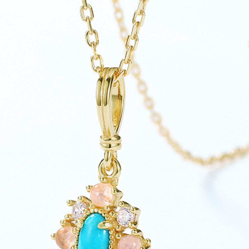 天然ターコイズ ペンダント 精巧仕上げ Silver925 カラーストーンセッティング 10Kゴールドメッキ ヴィンテージ風 ネックレス