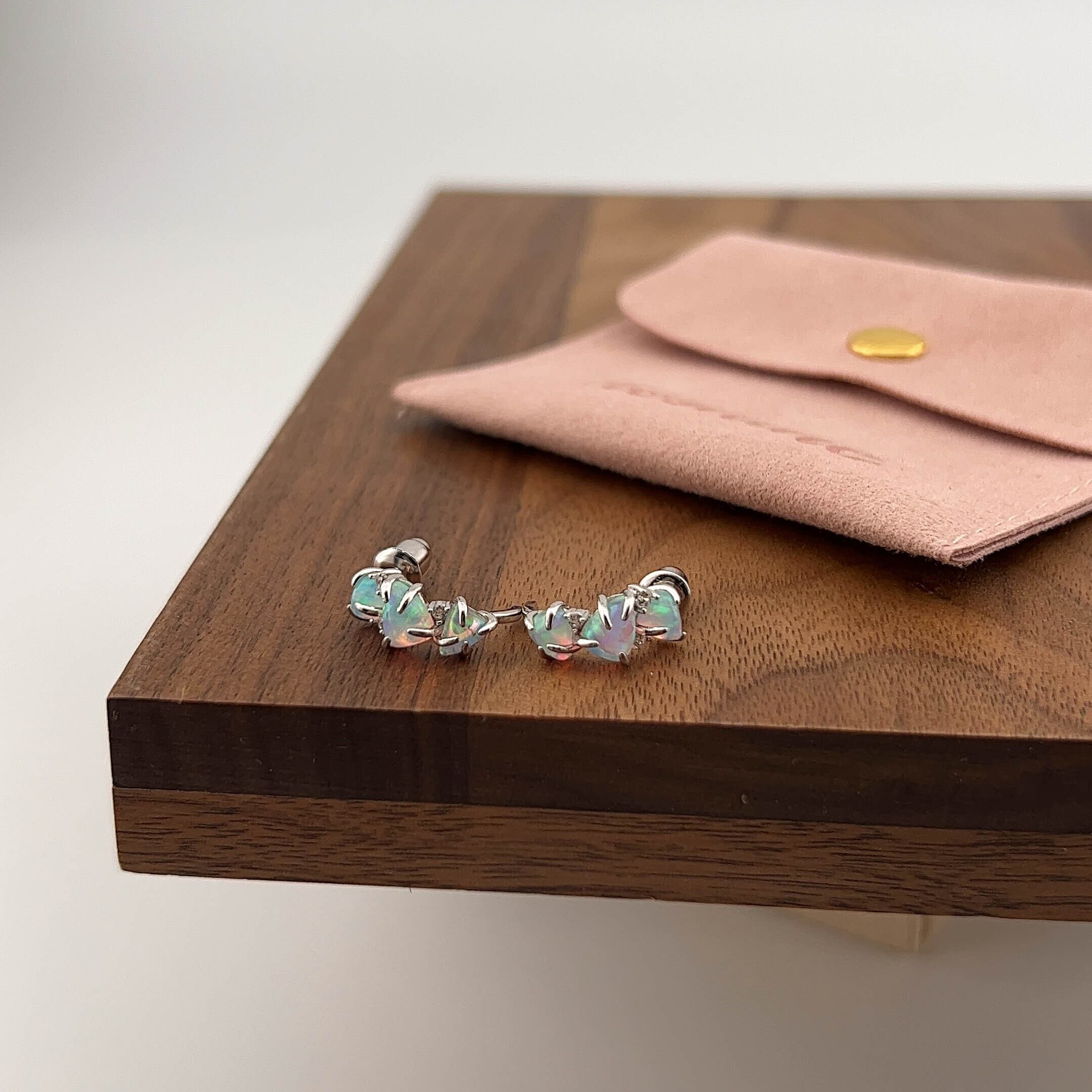 トレンド感のある 不規則デザイン オパール ピアス Silver925 ミニマル 個性派デザイン