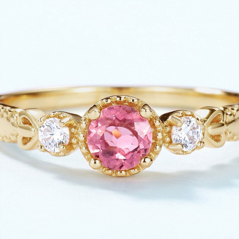 レディース 天然ピンクトルマリン リング ヴィンテージデザイン Silver925 ゴールドメッキ