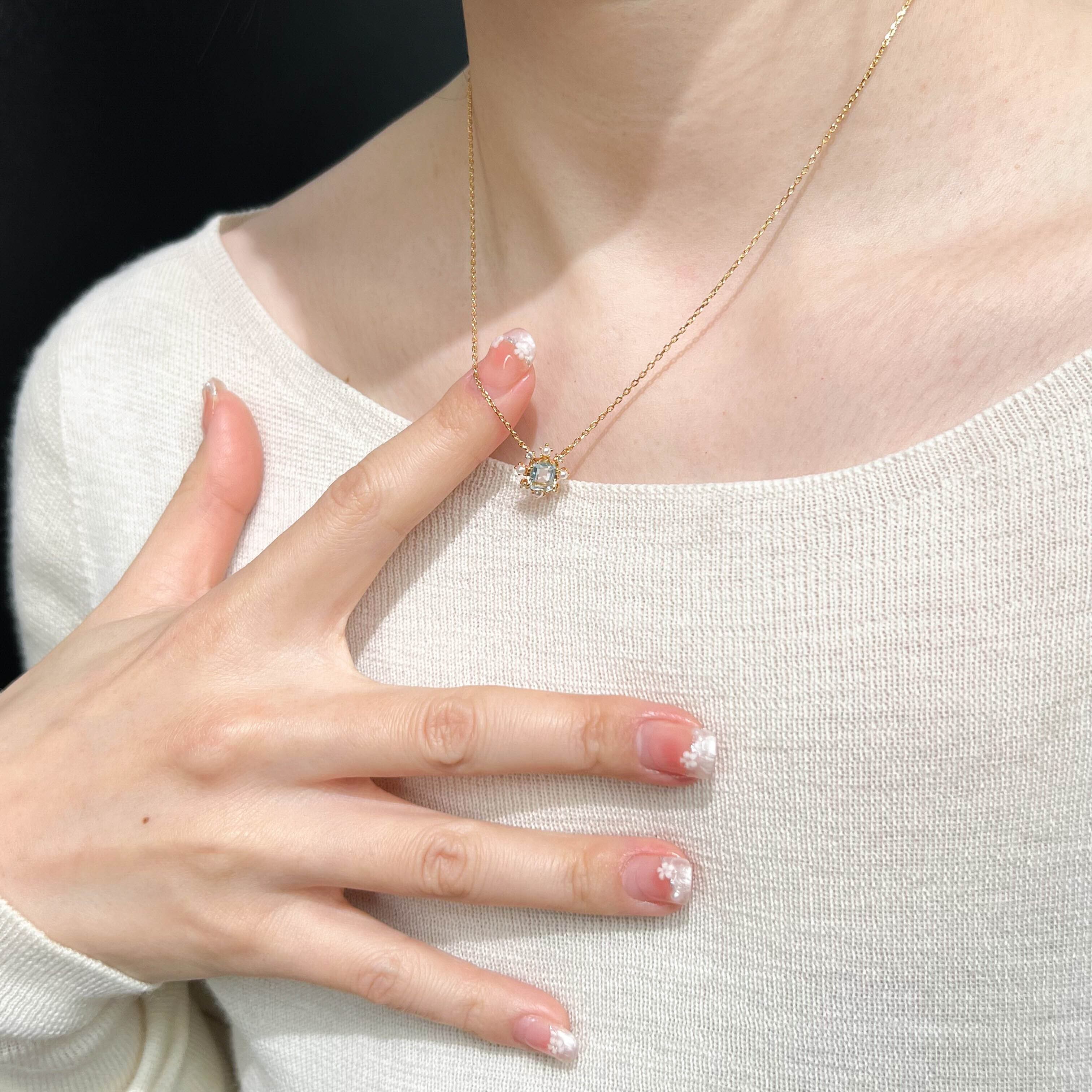 雪の結晶モチーフが首元に上品なきらめきをプラス。