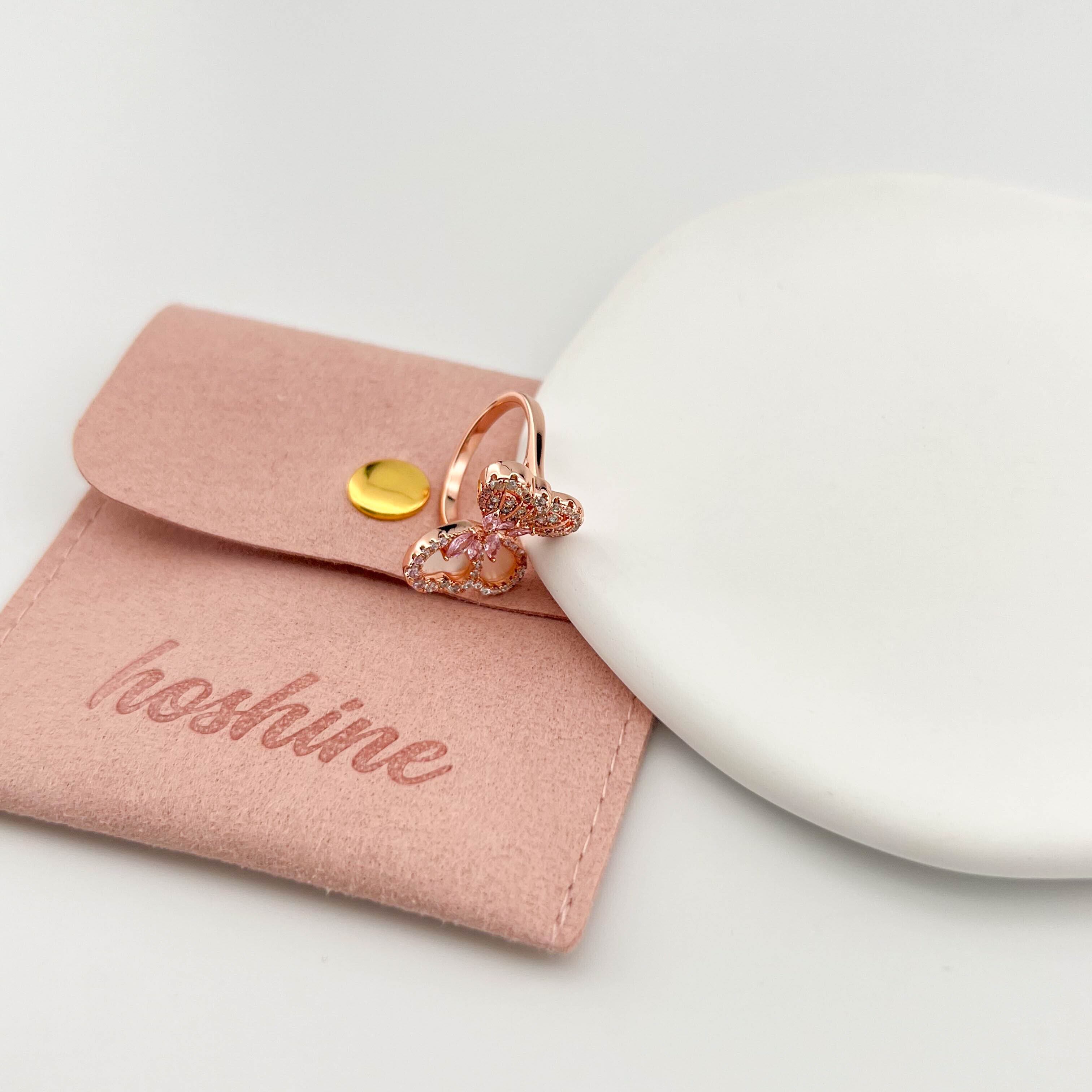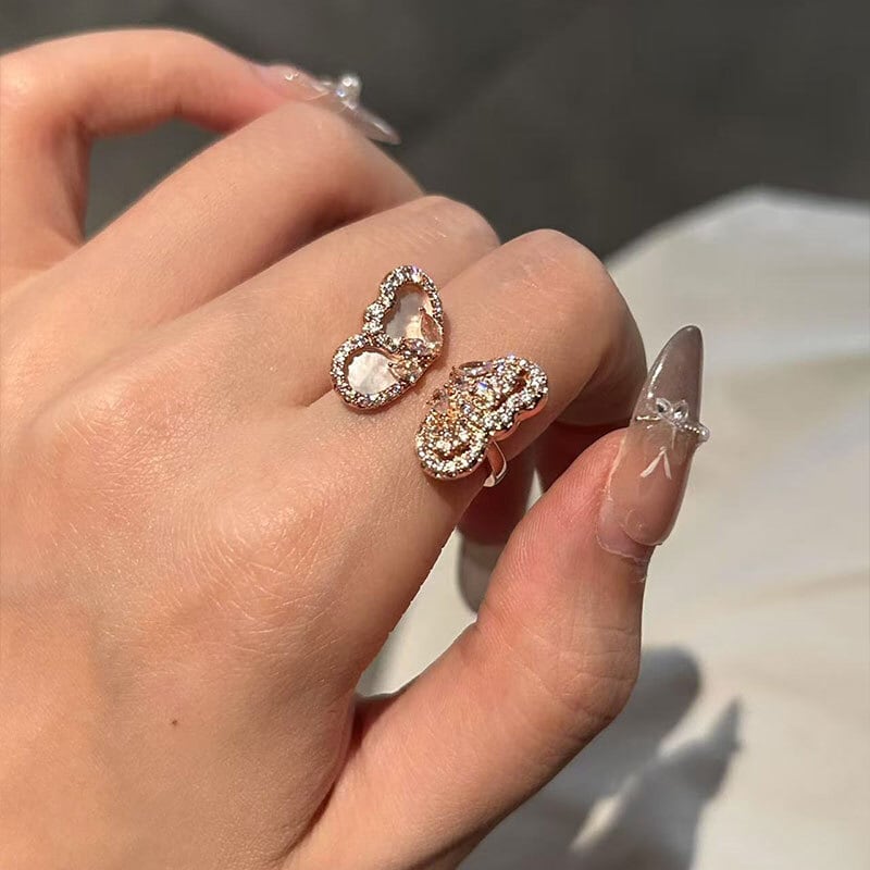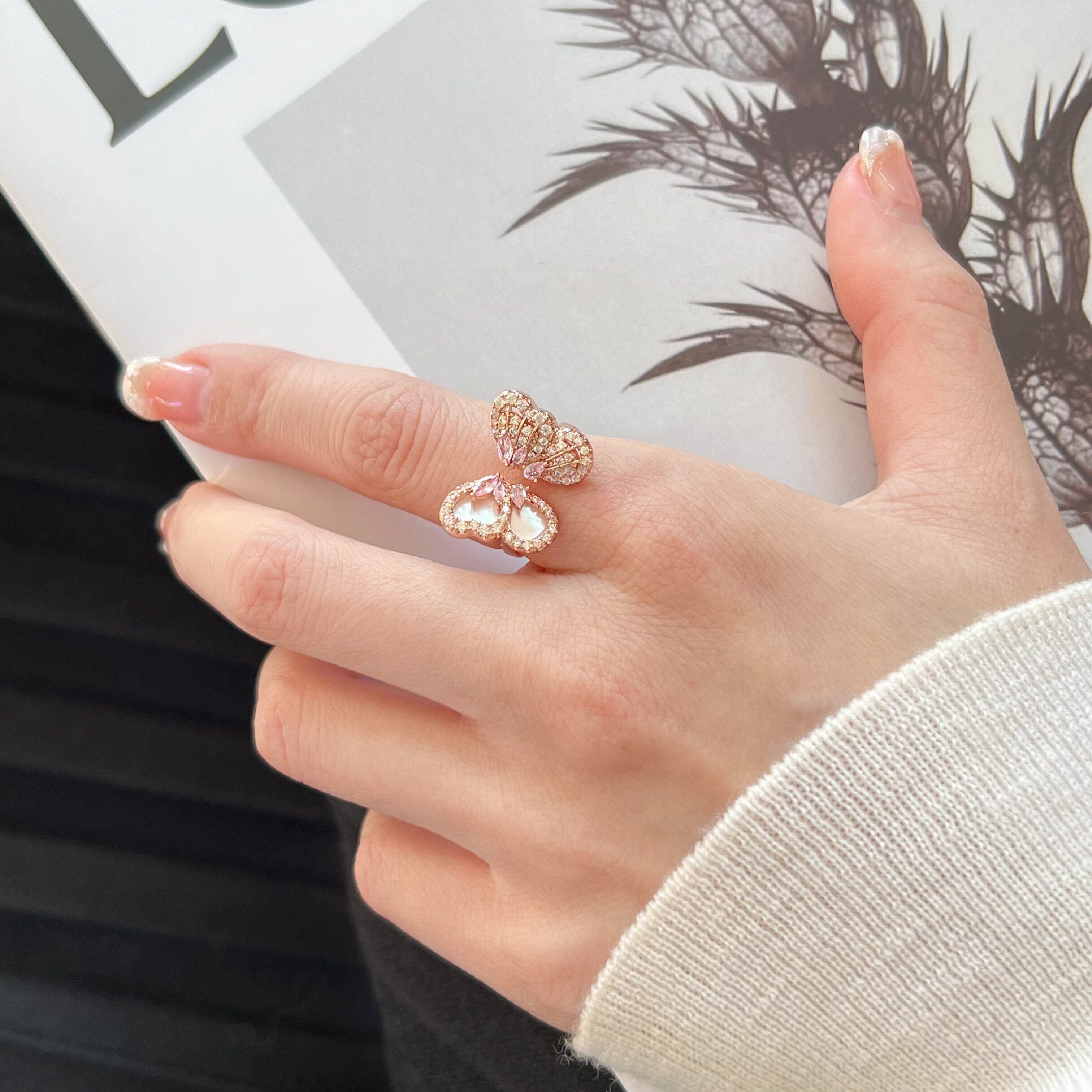 天然マザーオブパールとジルコニア蝶々モチーフリング