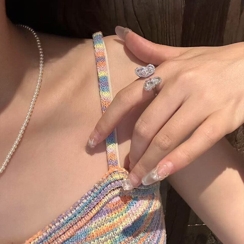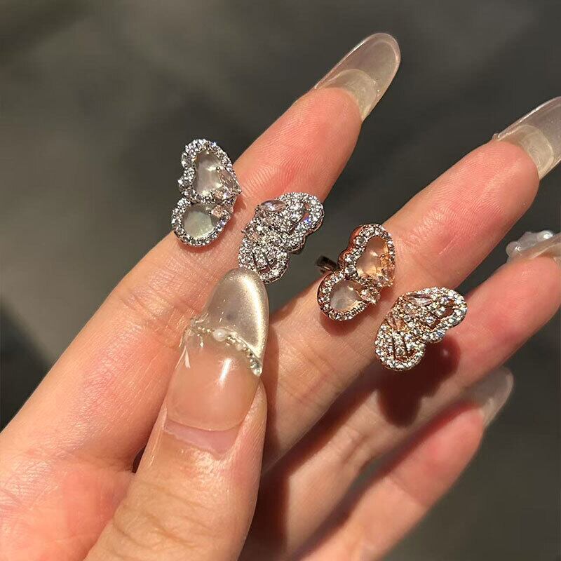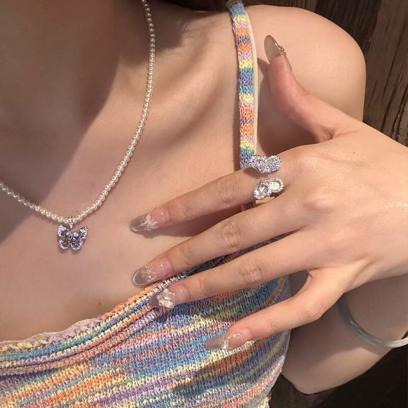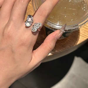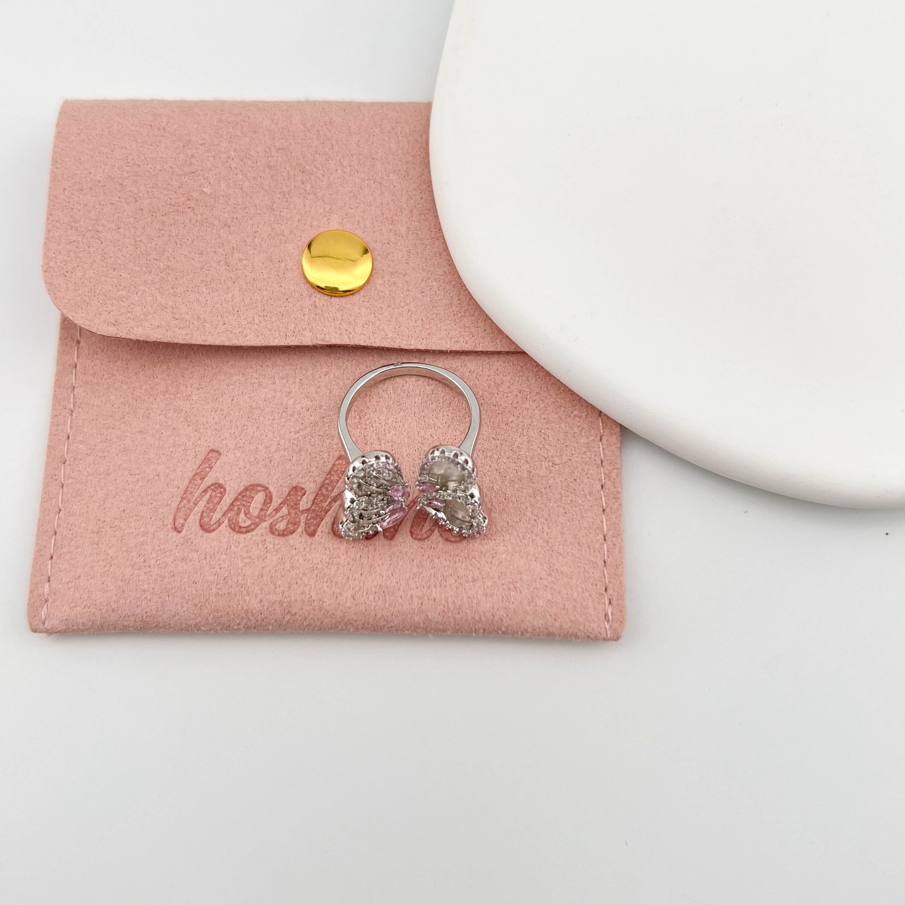 天然マザーオブパールとジルコニア蝶々モチーフリング