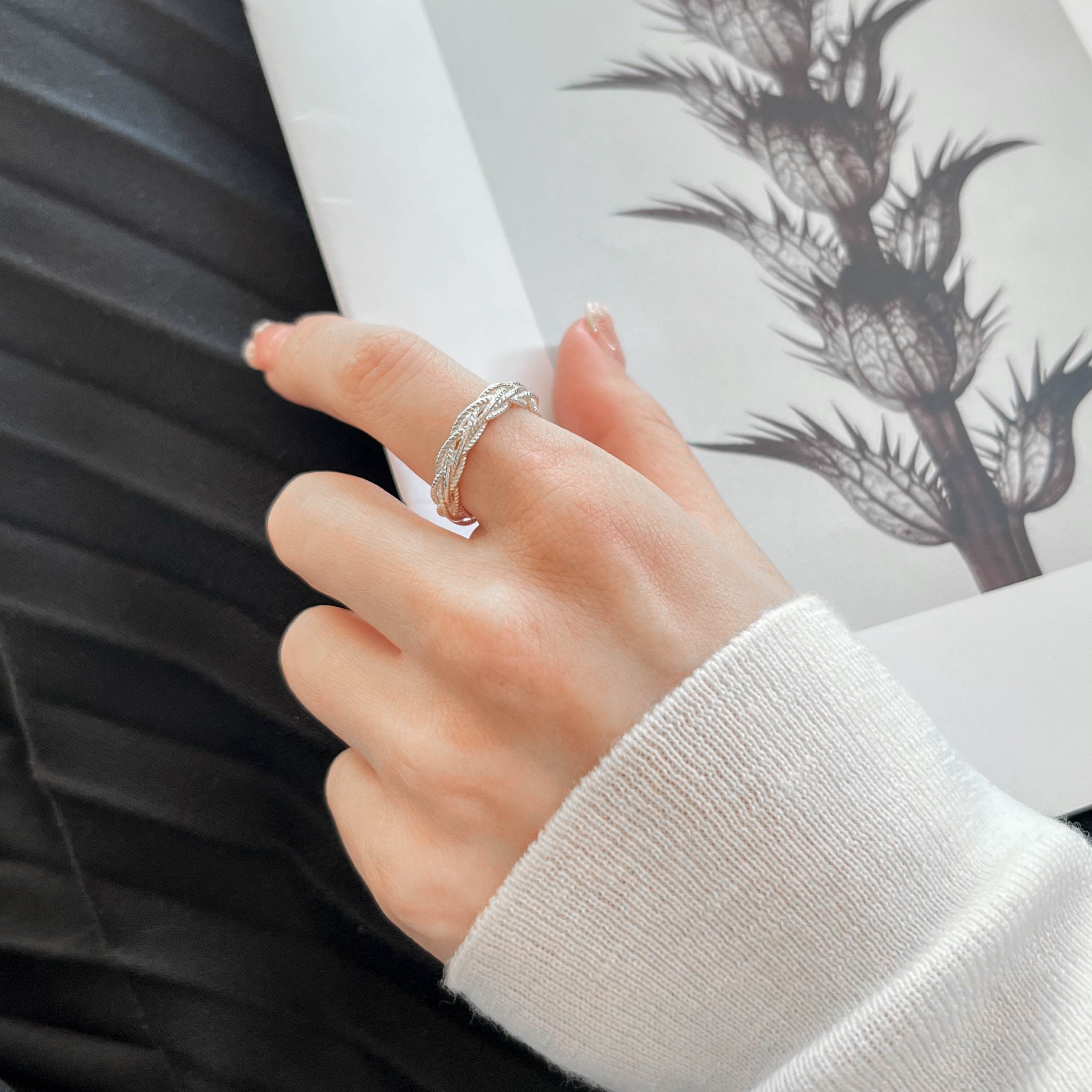 Silver925韓国風デザインの編み込みリング