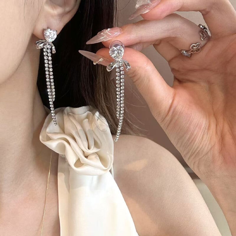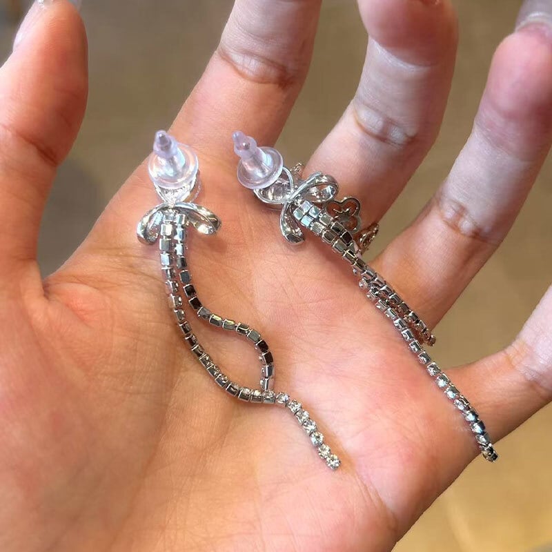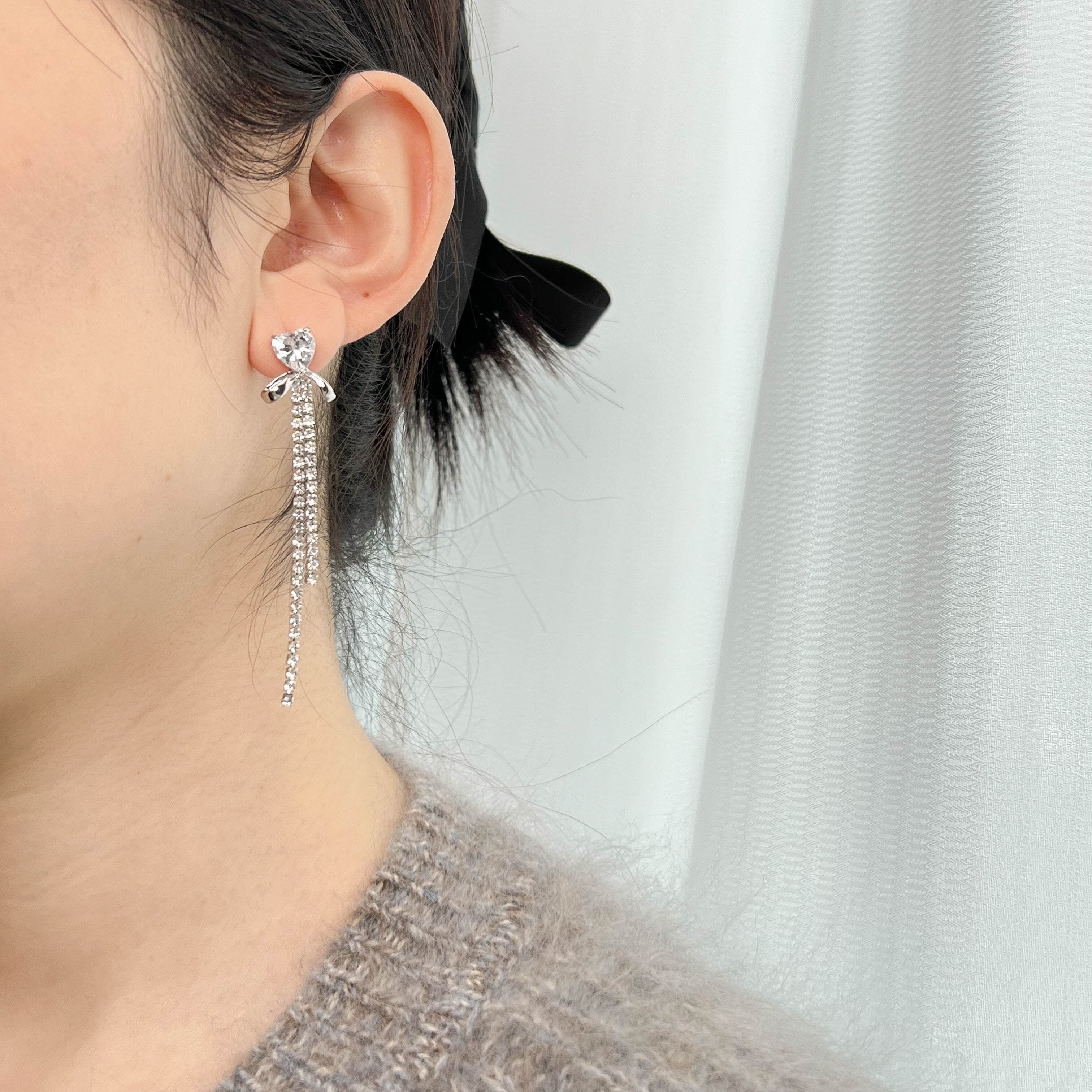 シルバーカラーのタッセルピアス