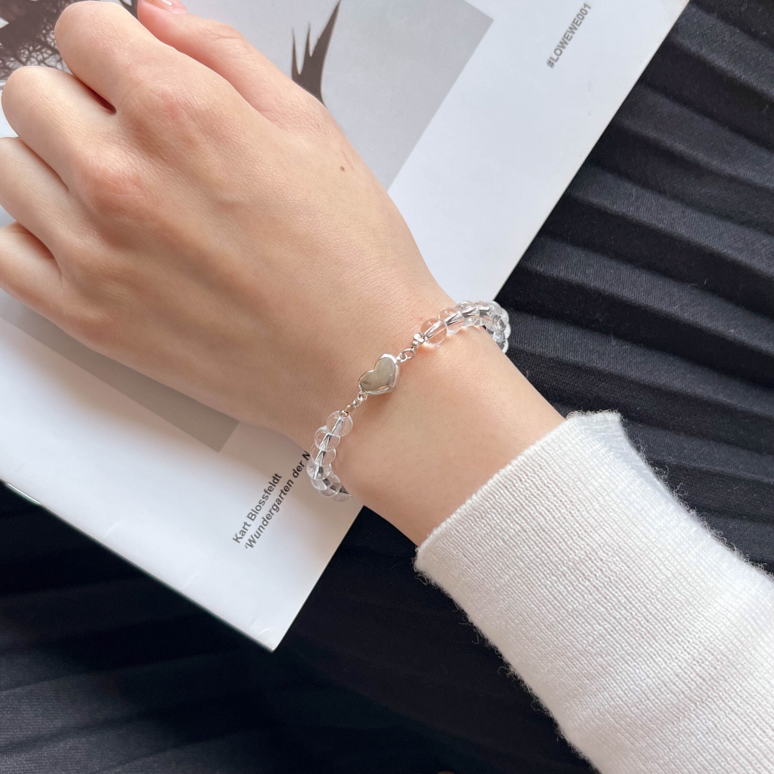 天然透明クリスタル×Silver925ハートモチーフブレスレット