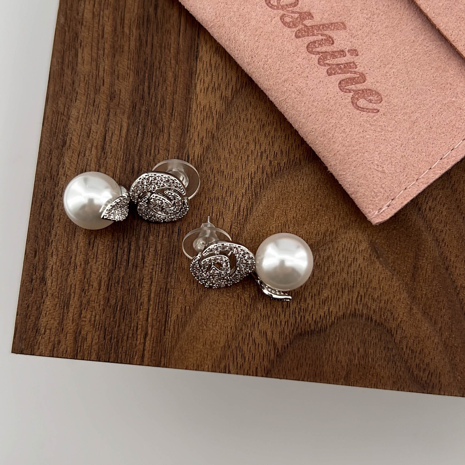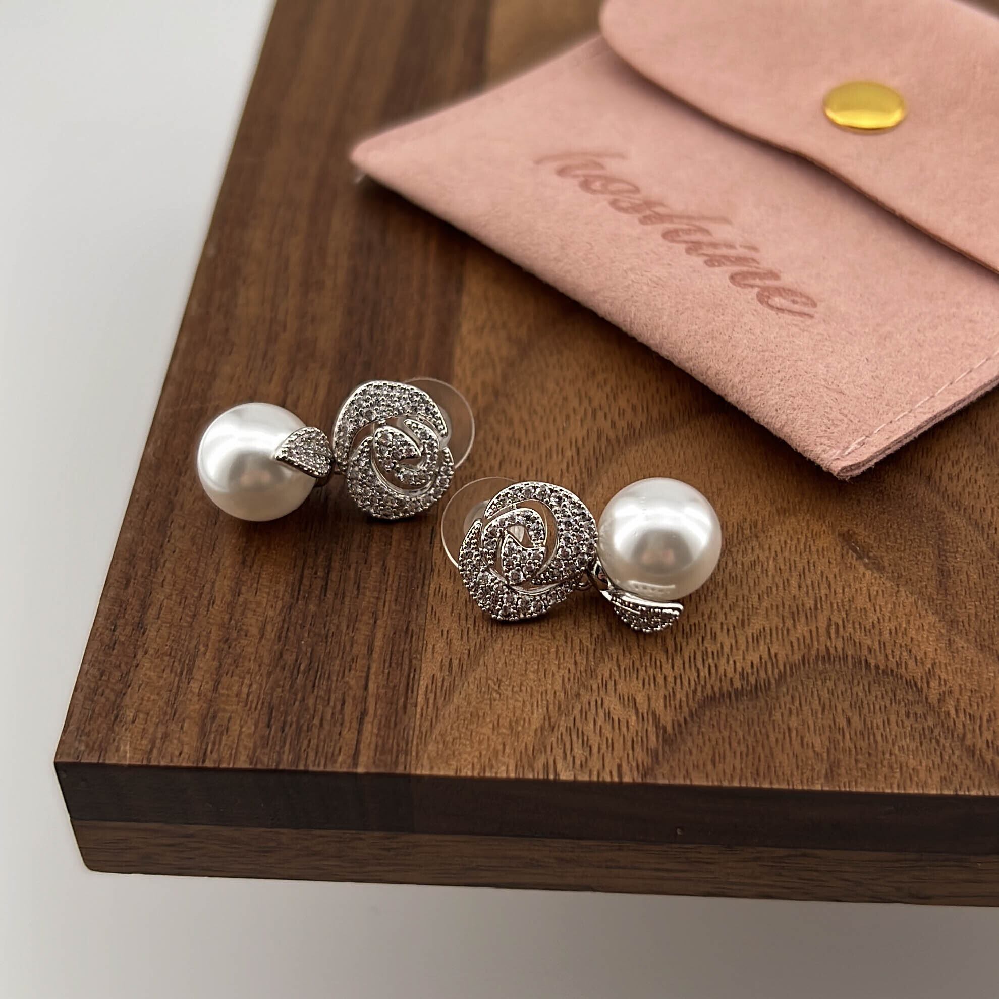 上品質ジルコニアスワロフスキーパールをバラ型可愛いピアス