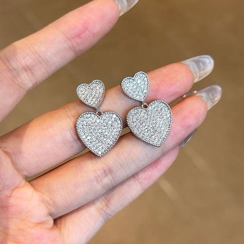 シンプルなハートモチーフにジルコニアダブルハートピアス
