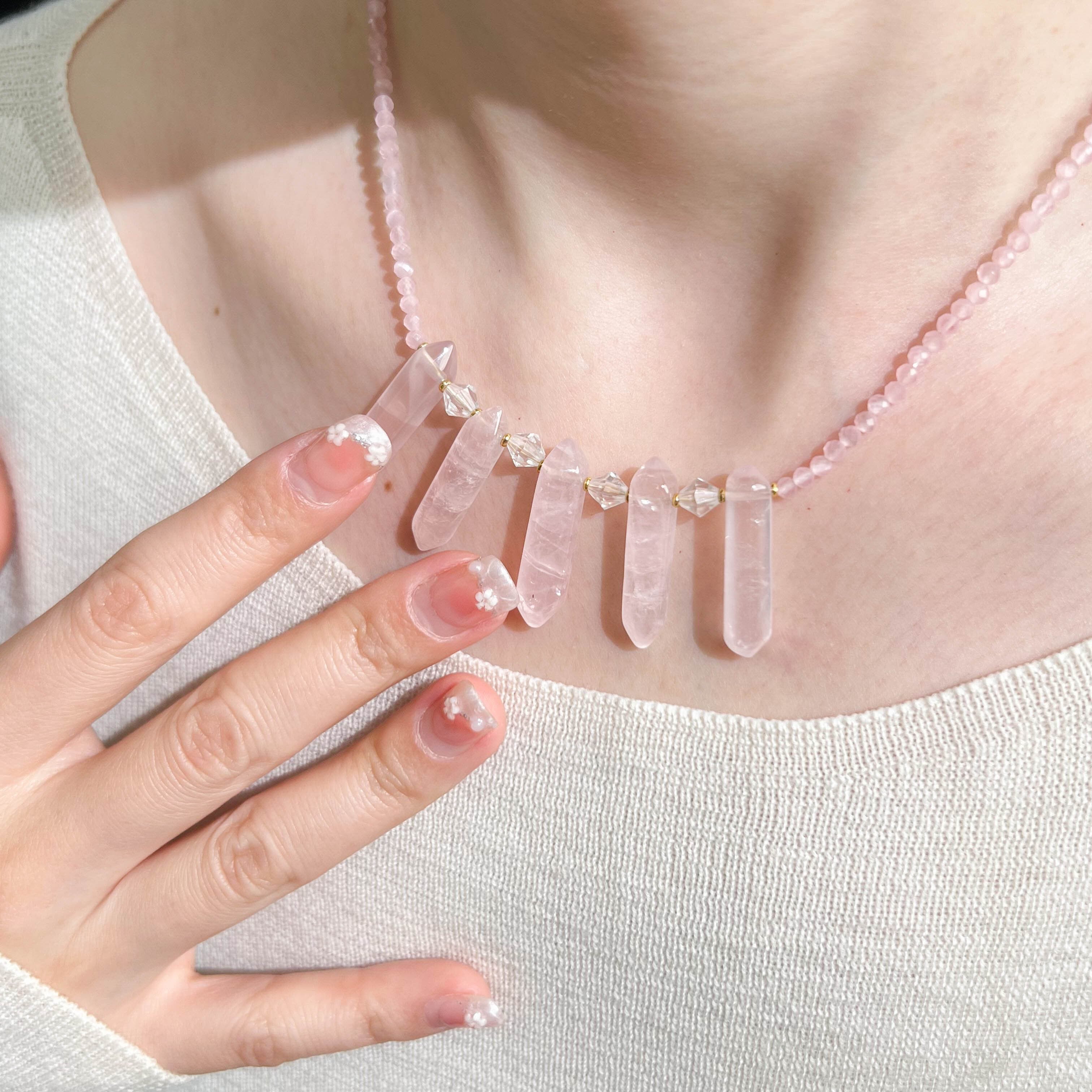 素材:天然石ローズクォーツ+アレルギー対応ステンレス素材