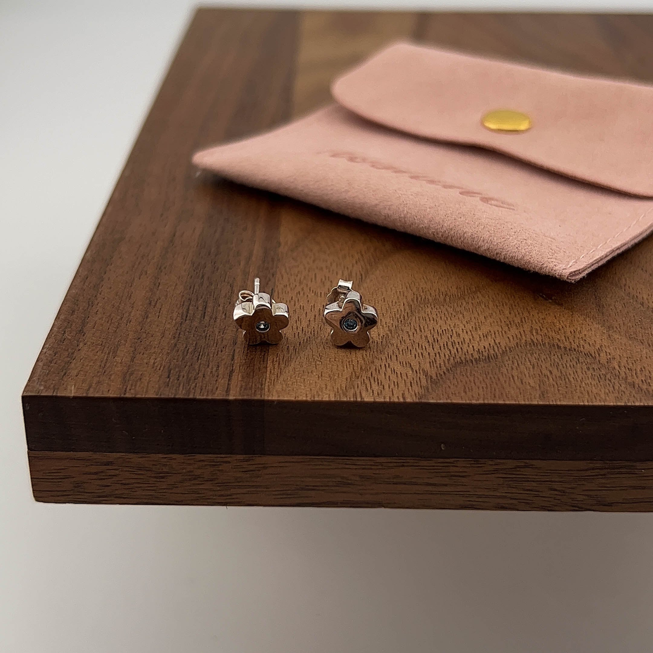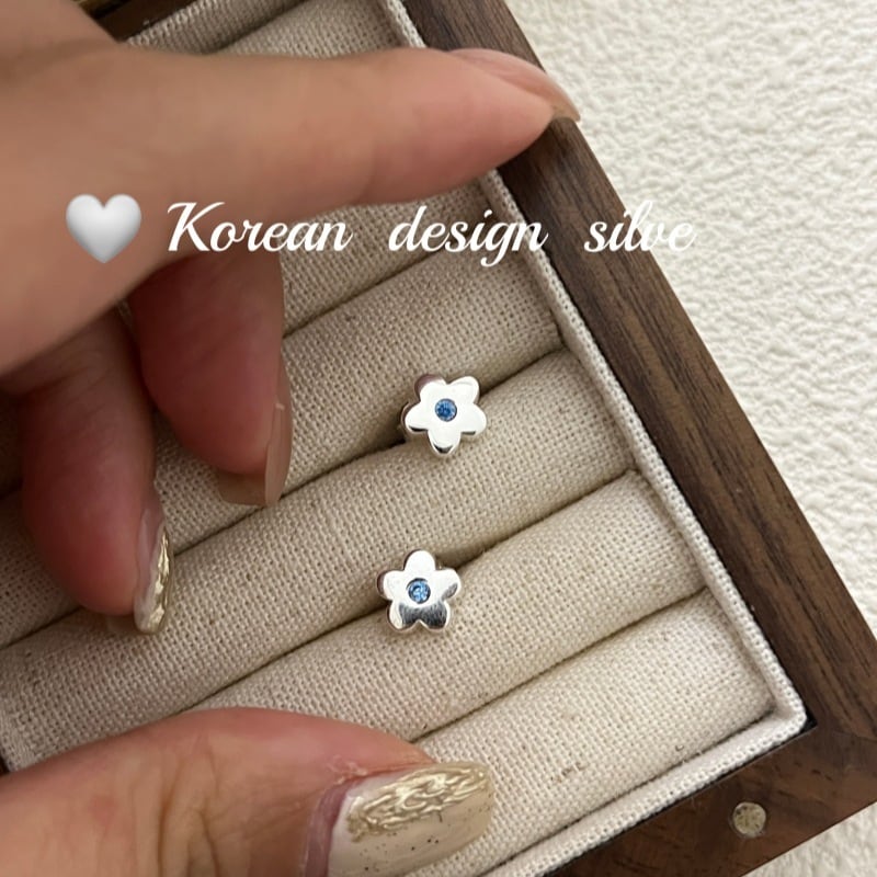 シンプルS925純銀小さな梅の花とブルージルコニアピアス