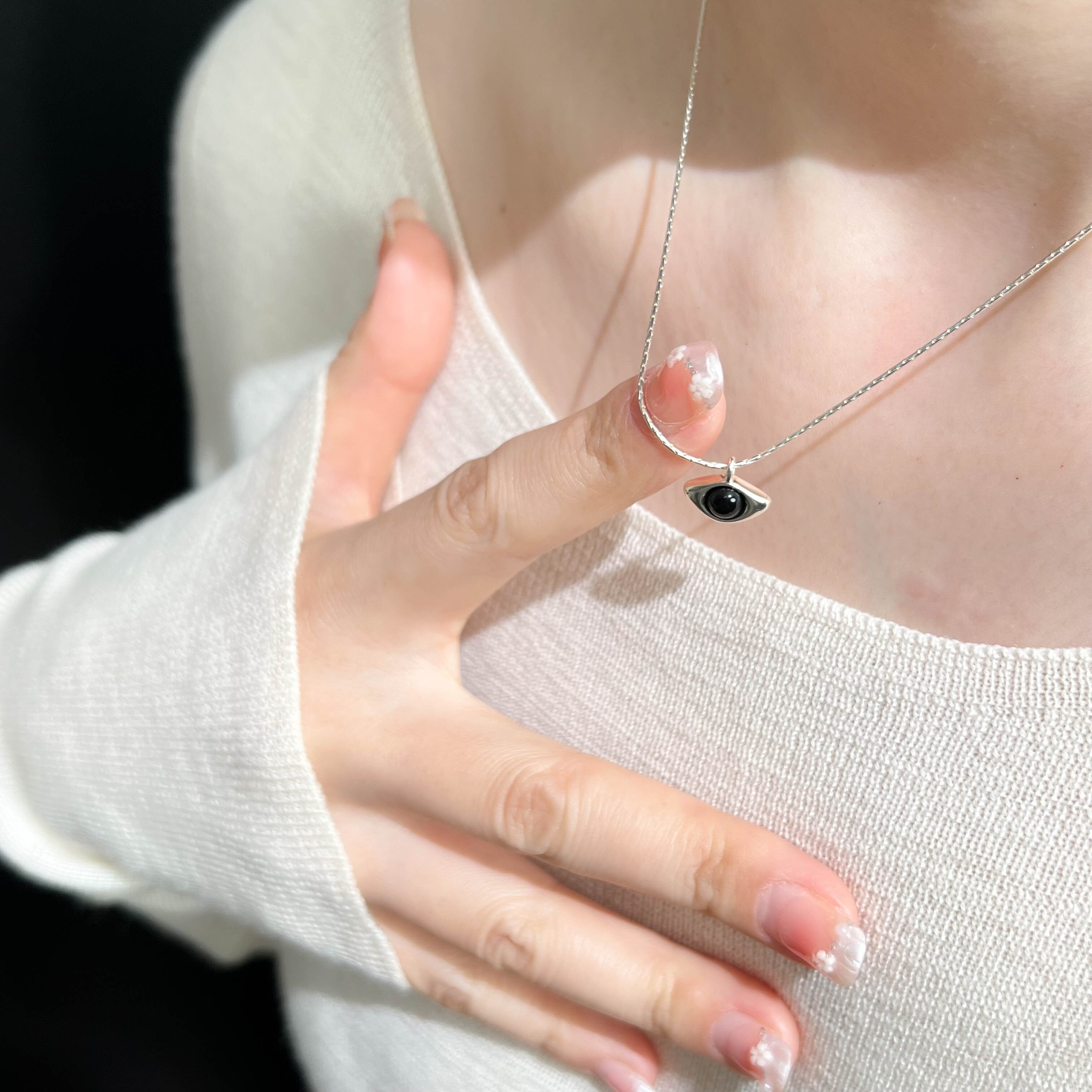 Silver925純銀シンプルなデザイン悪魔の翼とアゲートのネックレス